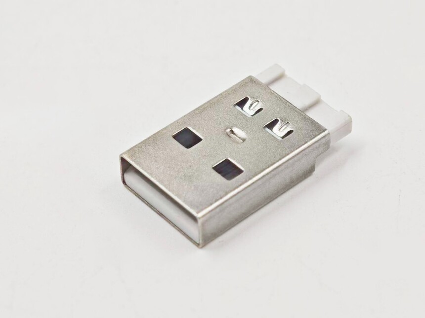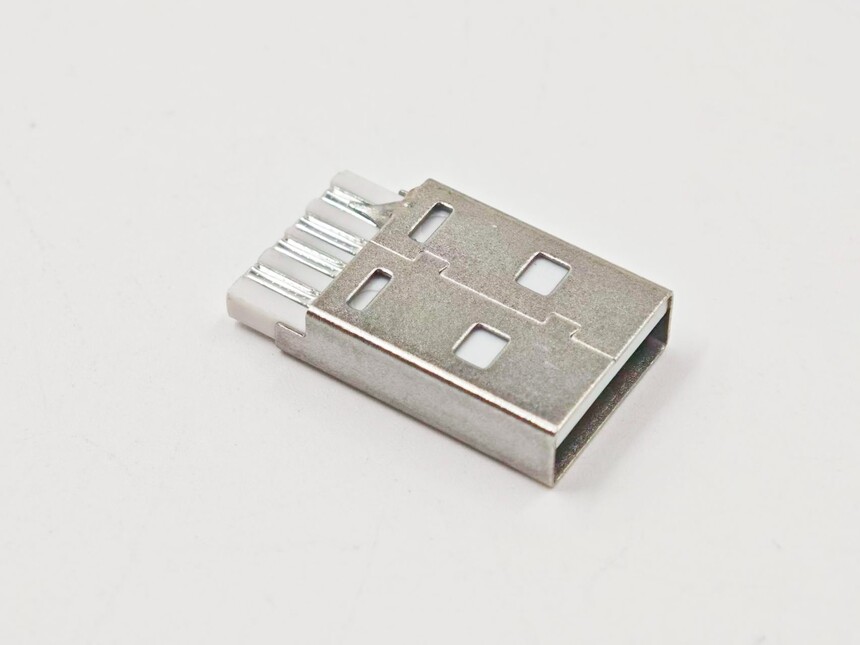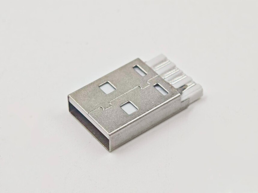 USB A公焊线式连接器L=20.40白胶G/F铁壳镀镍48H(侧边短路款)