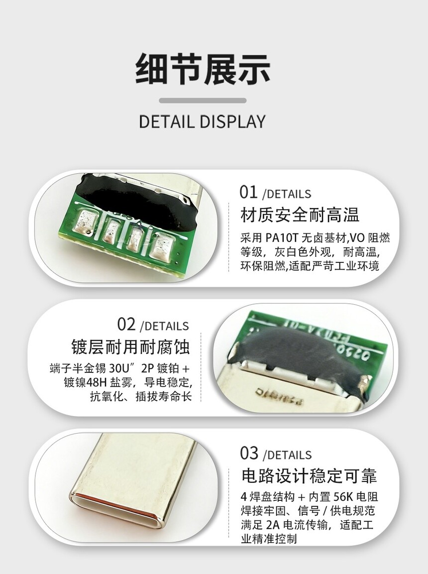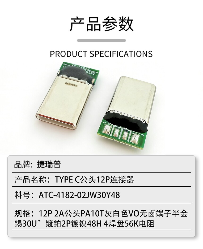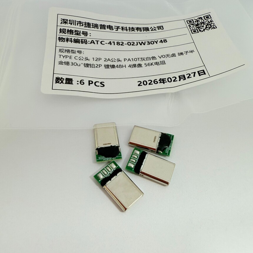 TYPE C12P PA10T灰白色无卤端子半金锡60u'镀哑镇48H2焊盘不加锡点环氧胶56KΩ电阻未镀纳米镀膜