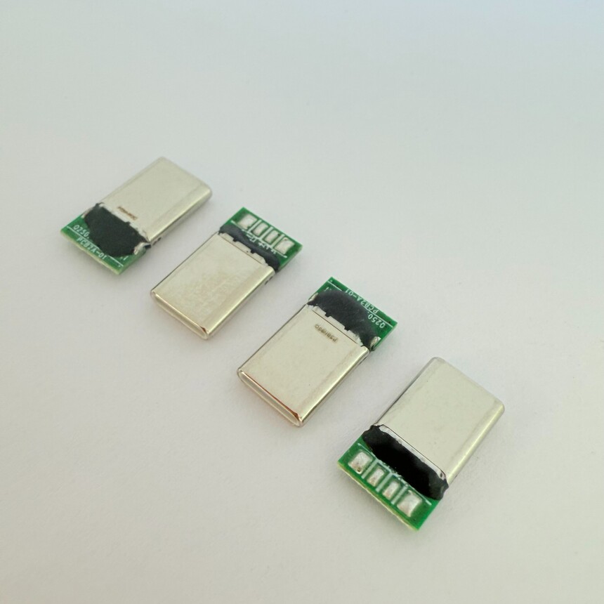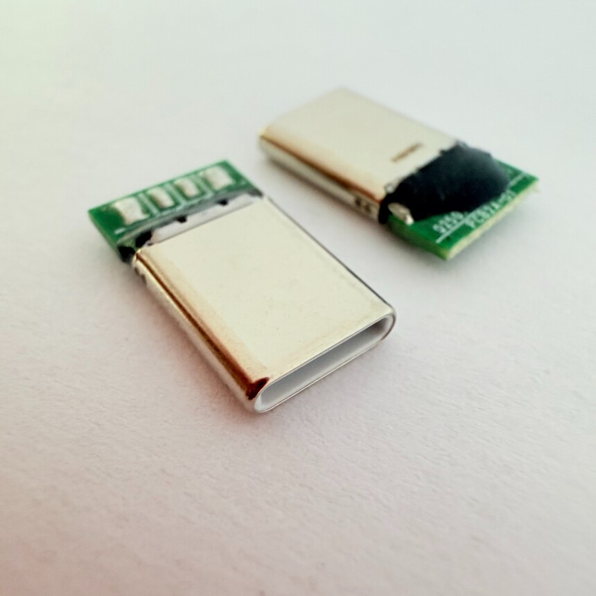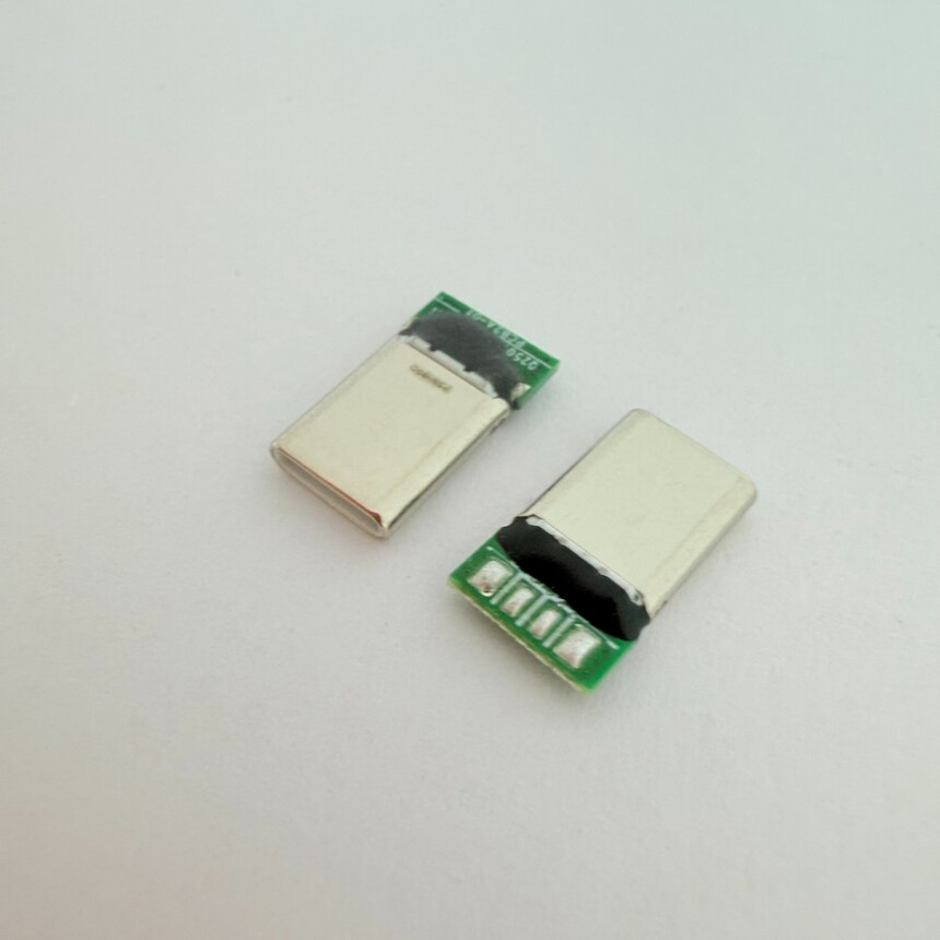 TYPE C公头满款L=17.4MM T=3.6MM(带PCB-3.0 CTO C4+6焊盘加锡C1=10NF电容Rp=56KΩ电阻拉伸壳带弹片黑胶端子半金锡G/F亮子镀哑镍24H